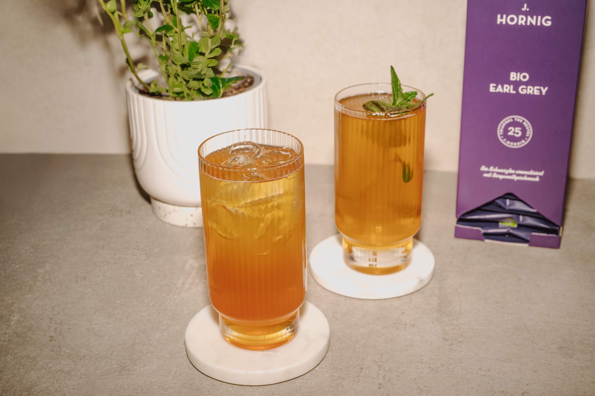 Gin trifft auf Tee: Feiner J. Hornig Bio Earl Grey mit Bergamotte-Note, kombiniert mit Gin, Zitronensaft und Soda. Elegant, leicht und herrlich erfrischend – für alle, die es stilvoll lieben.