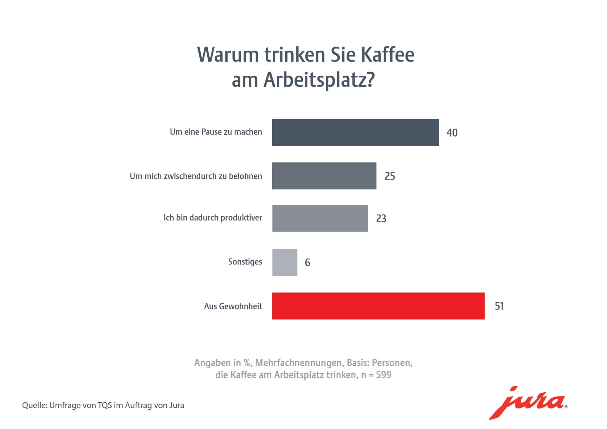 Am 1. Oktober feiert die Welt den Tag des Kaffees. Die Kaffeenation Österreich hält ihr liebstes Genussmittel besonders hoch. Jura Österreich hat gemeinsam mit dem Marktforschungsinstitut TQS eine Blitzumfrage durchgeführt und den Kaffeekonsum in den heimischen Betrieben beleuchtet.