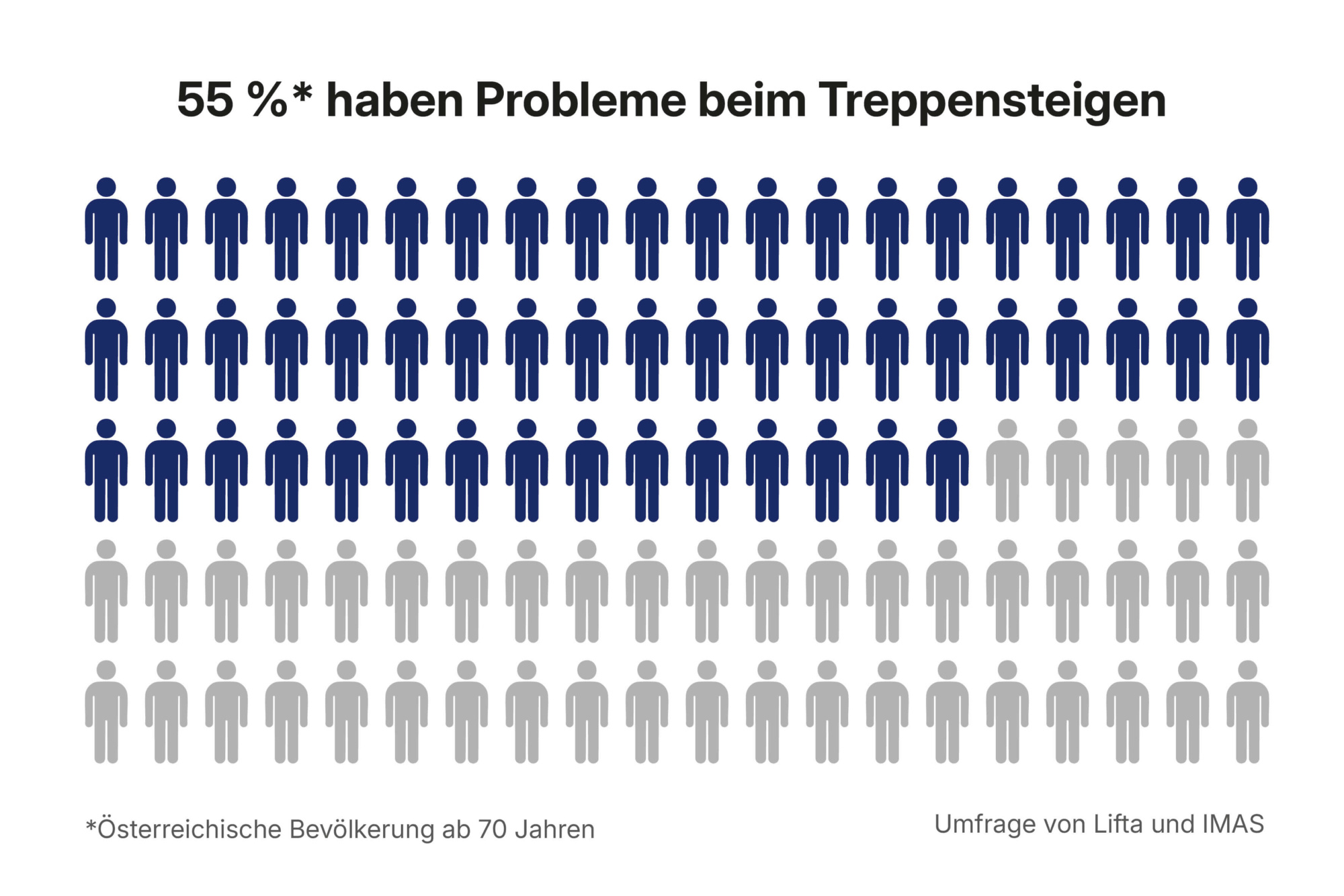 Altern betrifft jede Familie in Österreich – doch nur wenige sprechen offen über die damit einhergehenden Einschränkungen. Besonders beim Thema Mobilität zeigen die Zahlen ein alarmierendes Bild: Mehr als jede:r Zweite über 70 hat Probleme beim Treppensteigen. Fast ebenso viele (47 %) schämen sich, diese Einschränkungen einzugestehen. Dies führt auch dazu, dass die Kluft zwischen Wunsch und Realität groß ist: 98 % der über 70-jährigen Österreicher:innen wollen im eigenen Zuhause alt werden, doch wer sich seine eigenen Einschränkungen nicht eingesteht, riskiert, ebendiese Selbstständigkeit zu verlieren. „Wir wussten aus Erfahrung, dass das Thema sensibel ist. Aber dass so viele Menschen es aus Scham verschweigen, hat auch uns betroffen gemacht“, so Alexander te Best, Geschäftsführer vom führenden Treppenlifthersteller Lifta, über die Ergebnisse. „Diese Daten zeigen, wie dringend es Enttabuisierung braucht – denn sehr oft gibt es technische Lösungen, die den Alltag erleichtern, ähnlich wie bei einer Lesebrille oder einem Hörgerät.“